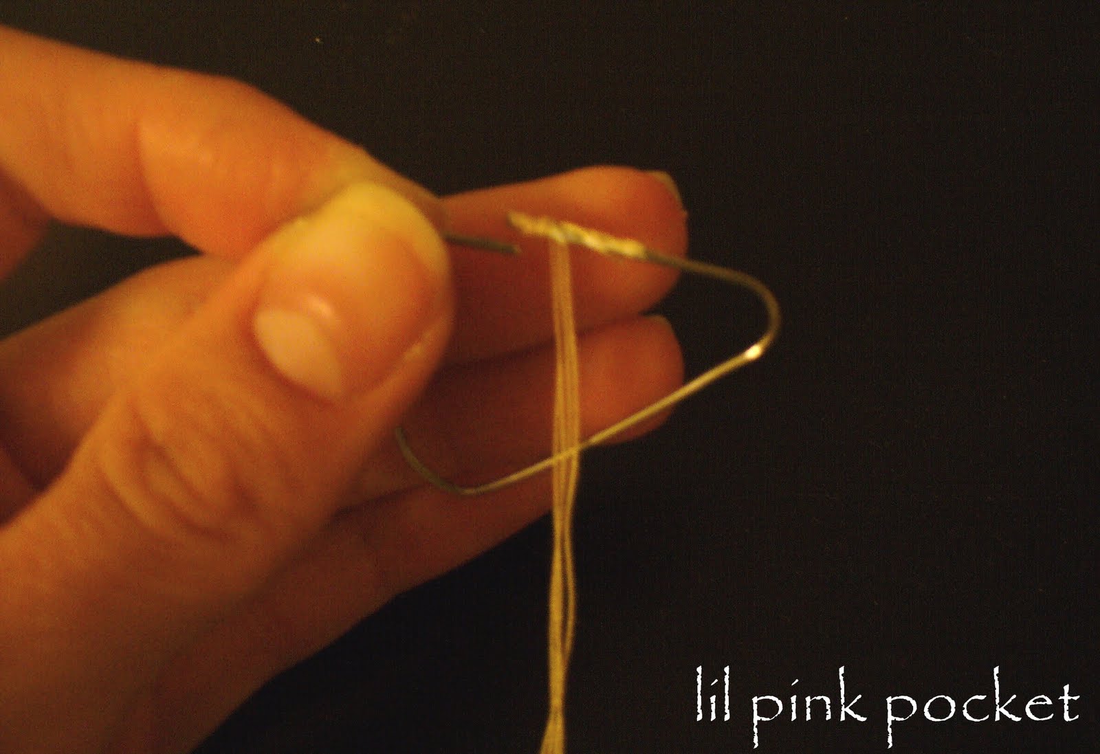 | Glue together ends of paperclip and begin wrapping floss around the entire paperclip adding a dab of glue every so often. |